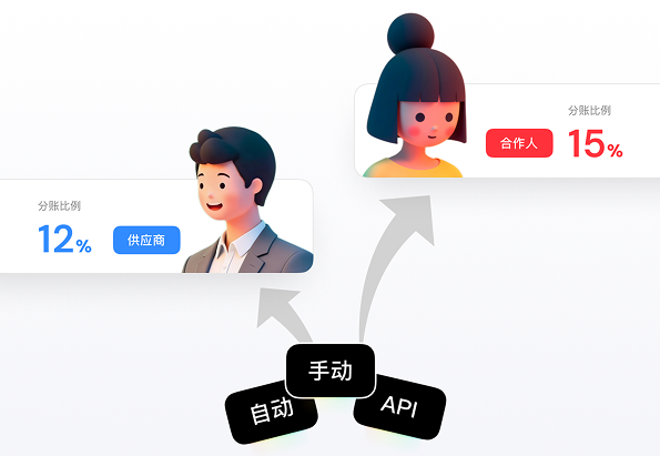 同时支持自动分账、手动分账、API调用三种分账方式。